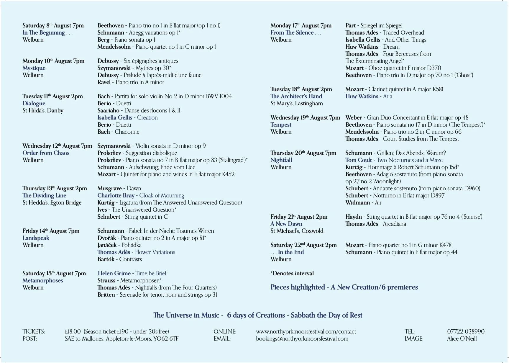 So welcome to the North York Moors Chamber Music Festival . . . .